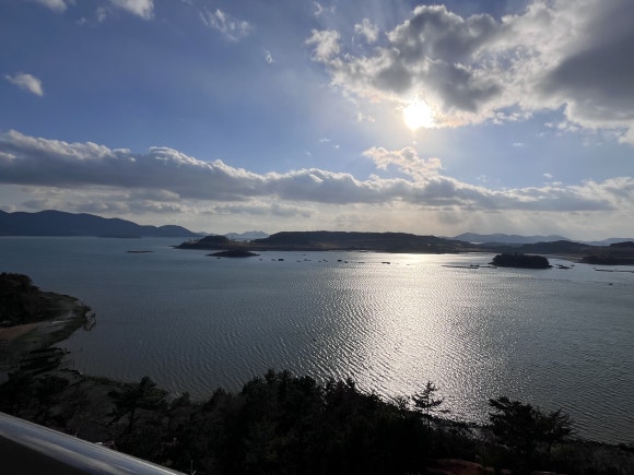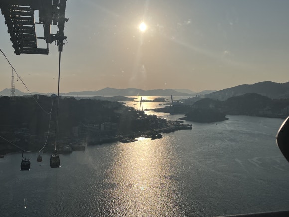 그저 하염없이 걸은 하루..걷고 또 걷다가 섬 밖으로 다시 나왔고 무려 14000원(ㅠㅠ..)을 내고 해상 케이블카를 타봤다. 근데 8인승 차에 혼자 타서 좀 좋았음..여수 시내와 바다가 한눈에 보였다. 남도 바다는 대체로 엄청 잔잔한 것 같다. 섬이 많아서 그런가..잔잔하고 윤슬도 해 떠있을 때는 거의 항상 보이고 평화로운 풍경이었다. 평생을 수도권에서 보낸 인간의 환상인가 이런 바닷가에 살면 마음이 좀 편하지 않을까 라는 생각을 해봤다. 근데 엄마가 자기 친구가 고등학교 때 바다 보면서 이 바다가 날 (지겹게 해서) 죽이겠구나 빨리 서울로 가야지 라고 했다는 게 갑자기 떠올랐다..
