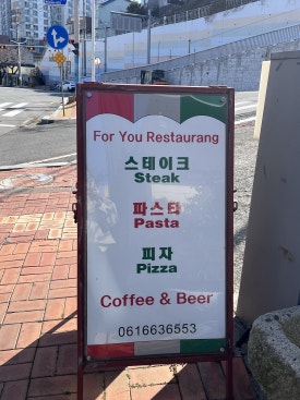 아마 엑스포쪽이었던 것 같은데 다니다가 우연히 ‘이탈리안 브런치(비건 가능)’이라는 플랜카드가 걸린 가게를 발견해서 헉 하고 들어갔다. 여수에 비건 식당 진짜. 진짜 없음 순천 쪽으로 한참 올라가야 베이커리 한두개 나오더라(못감 멀어서)..