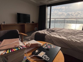 일부러 바다 보이고 테이블 있는 호텔을 예약했는데 생각보다 훨씬 좋아서..혼자 있기 너무 아까웠다. 진짜 완전 늘어져서 만화책도 읽고 에세이도 읽고 공부도 좀 하고 아주 좋은 하루를..